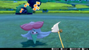頭のお花で表情が分かりづらいけど、ポケじゃらしを見るとキリッとします
