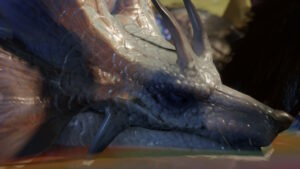 ムービーでは、獄仙郷にてティガレックスが寝込みを襲おうとするものの、その華麗な動きに翻弄されて最後は炎に包まれてし返り討ちに遭ってしまうというもの
