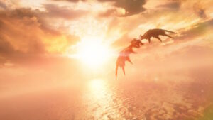 陽が差し込む美しい海原を、原初ゼナは力強く飛んで行き…クエストは完了しました。